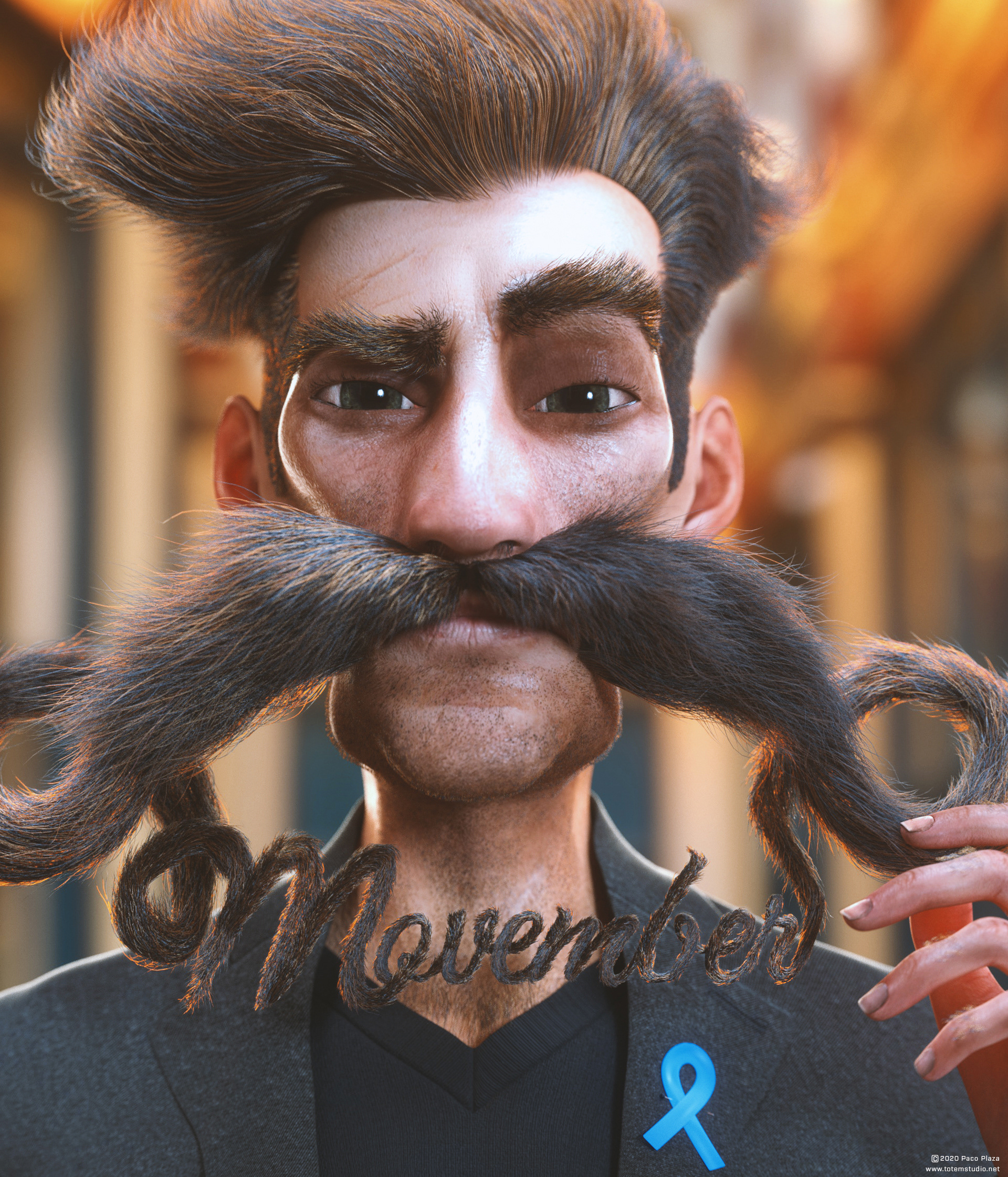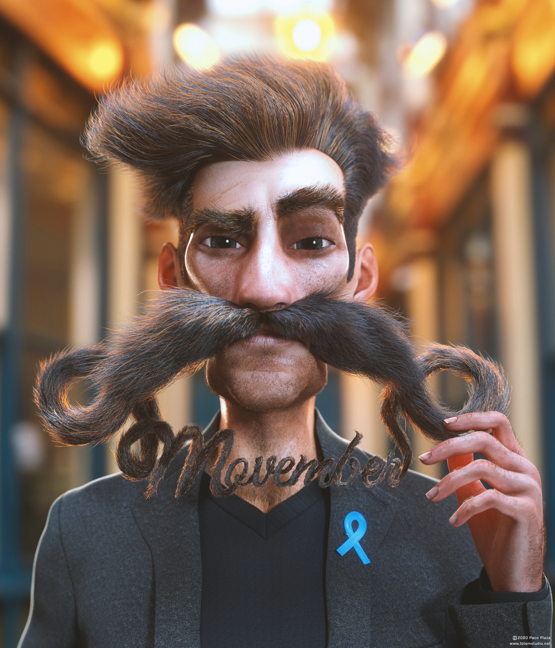 Themou Stache, a vintage stylized man that contributes to the annual Movember event with his long careful crafted mustache since 1898.